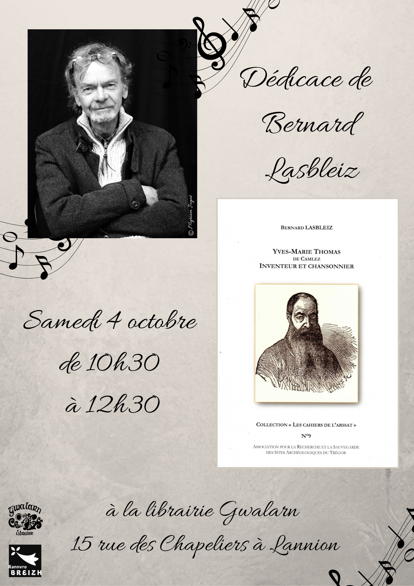 La librairie Gwalarn est heureuse d’accueillir Bernard Lasbleiz le samedi 4 octobre de 10h30 à 12h30 pour son ouvrage Yves-Marie Thomas de Camlez : inventeur et chansonnier.