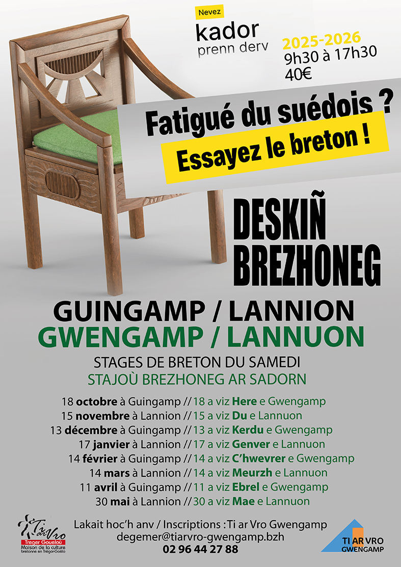 Les stages mensuels de breton sont co-organisés par Ti ar Vro Gwengamp et Ti ar Vro Treger-Goueloù. Groupes selon niveaux.