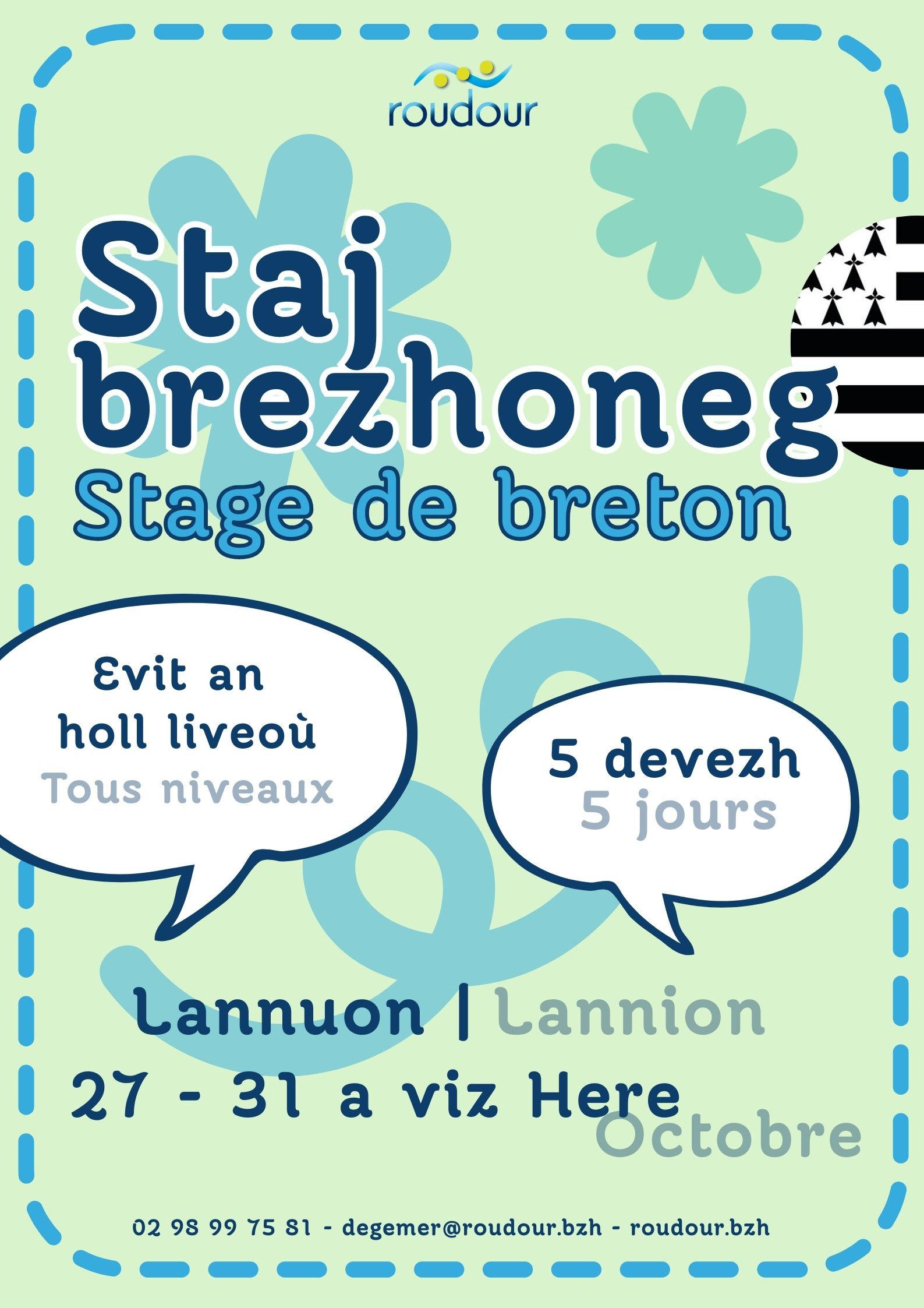 Roudour organise un stage de 5 jours à la langue bretonne à Lannion à la fin du mois d’octobre. Ce stage prendra la forme d’un jeu de rôle pédagogique appelé « Teñzor Kalon kreiz-Breizh | Trésor au coeur du Kreiz-Breizh ». Le stage est ouvert à tous les niveaux.