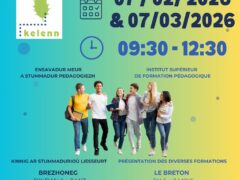 Samedi 7 février, samedi 7 mars : portes ouvertes – dorioù digor Kelenn Kelenn, stummadurioù e brezhoneg ha war ar brezhoneg Pal pennañ an daou vintinvezh-se eo kinnig ar stummadurioù aozet… da heul »