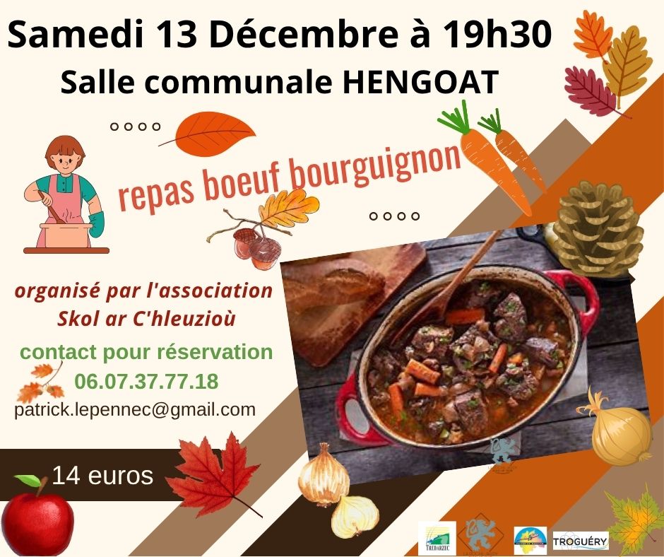 L’association Skol ar C’hleuzioù / l’école des talus vous invite à un repas conviviale le samedi 13 décembre à à partir de 19h30.