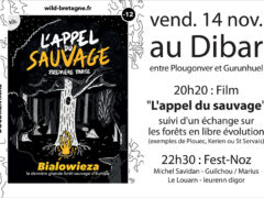 Soirée au Dibar le vendredi 14 novembre prochain. Projection du film de l’association Wild BZH sur les forêts en libre évolution, suivi d’un fest noz avec Michel Savidan, Marius-Guilchou, Le… da heul »